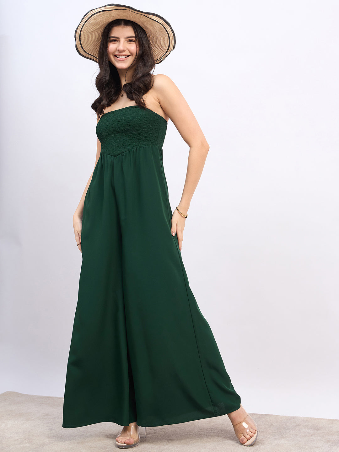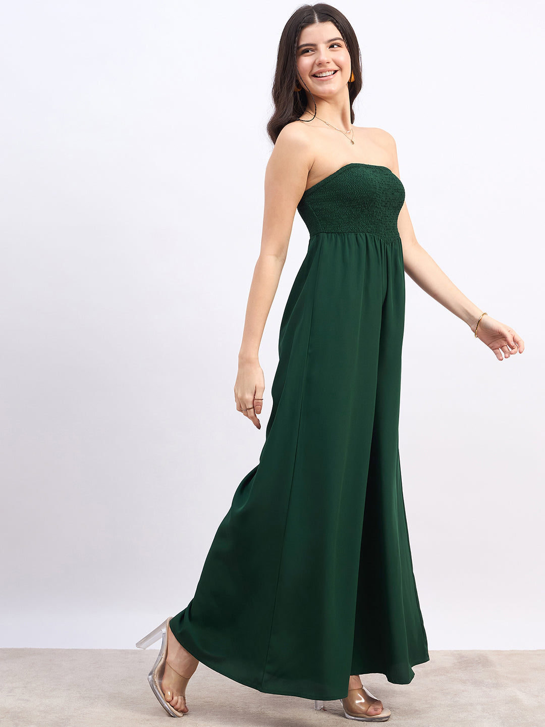 Berrylush Women Green Solid Strapless Wide Leg Basic Jumpsuit