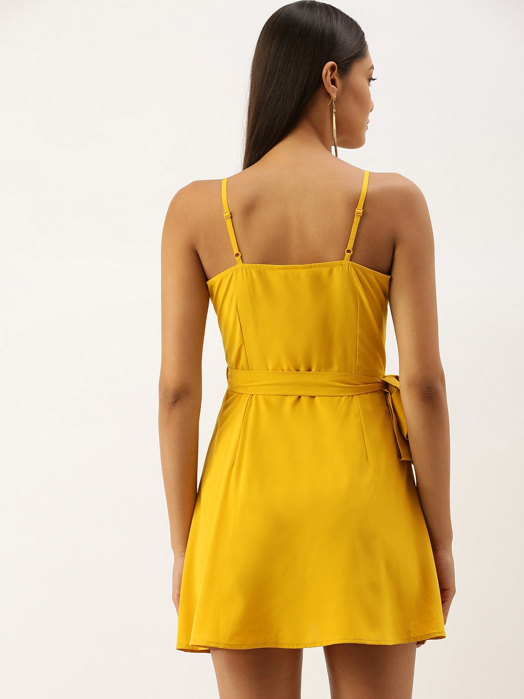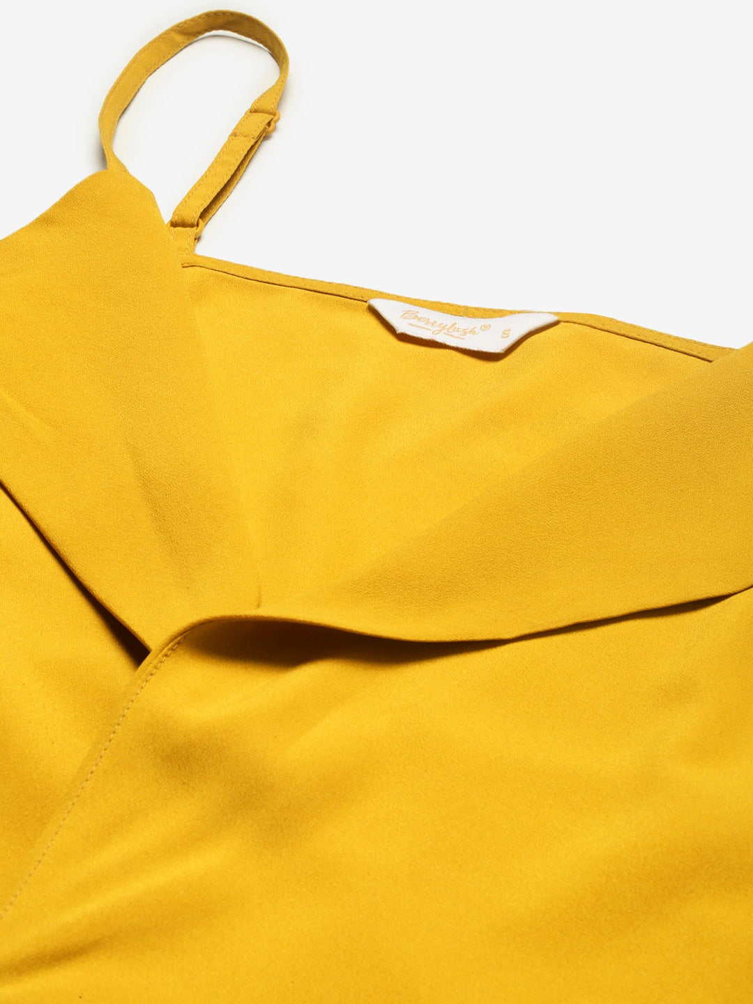 Berrylush Women Solid Yellow Ruffle Side Knot Cami Wrap Jumpsuit