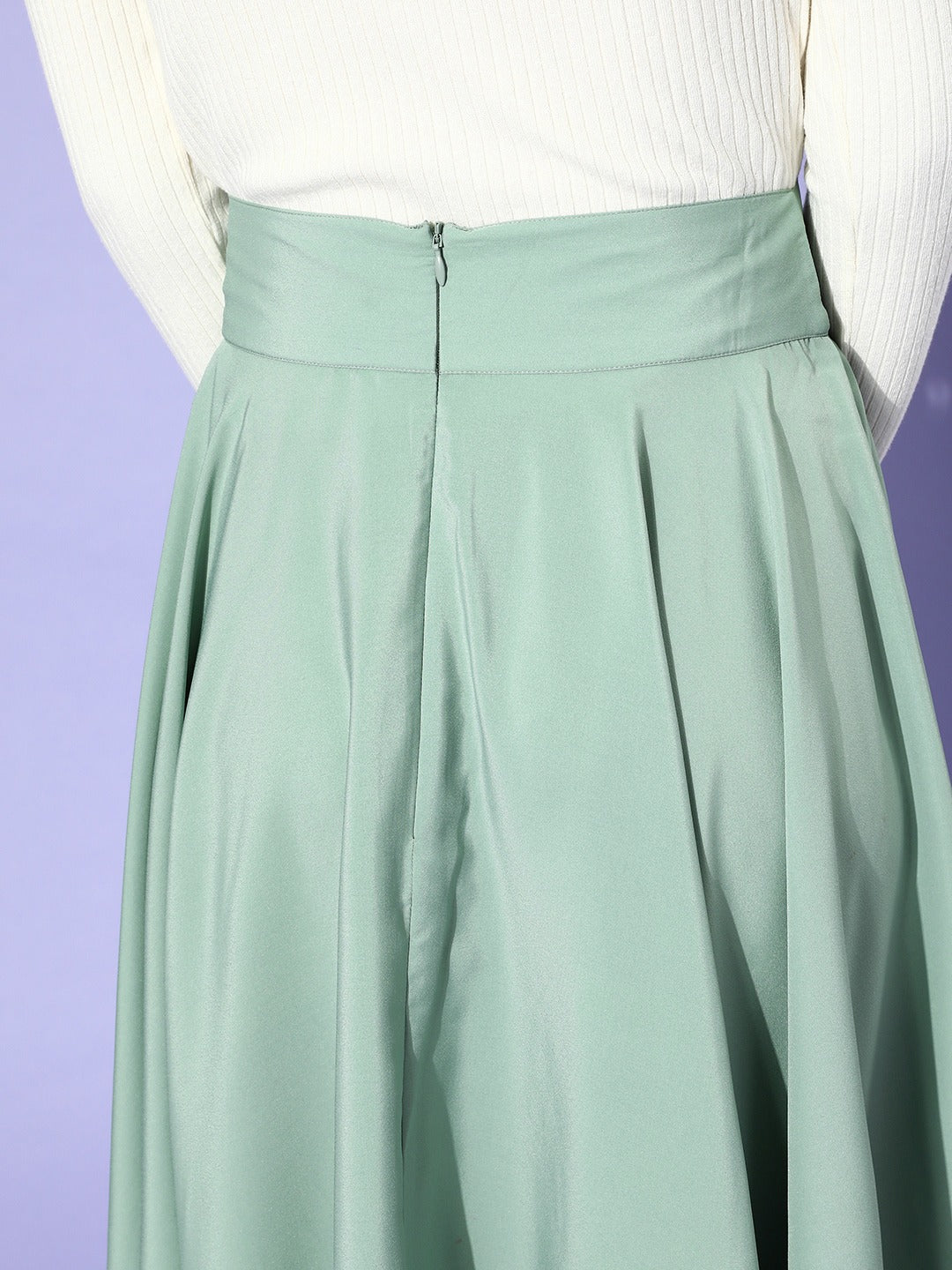 Berrylush Women Solid Light Green Flared A-Line Midi Skirt