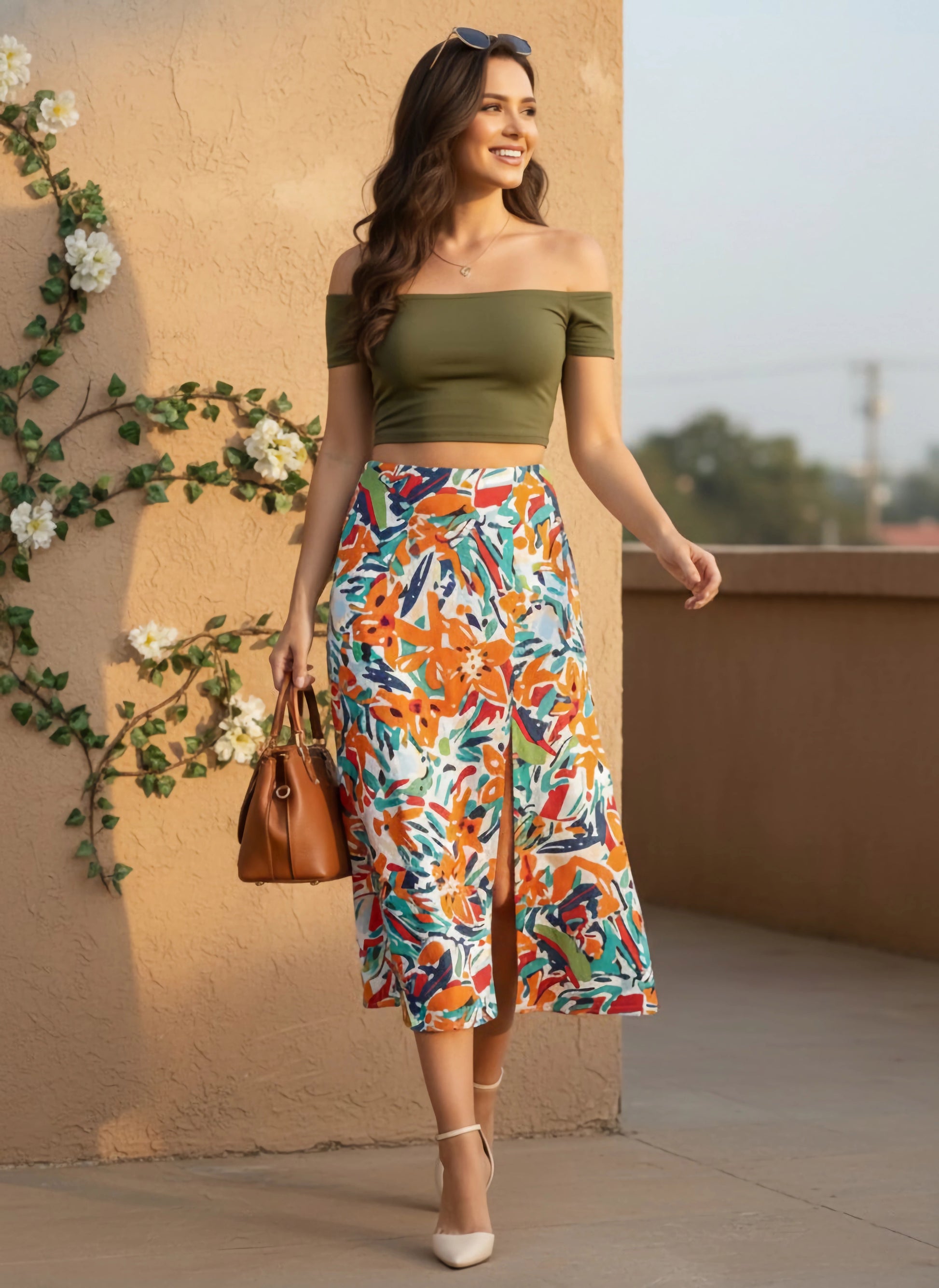 Show off your artistic and creative side through your casual style with this amusing White Abstract Printed Thigh-High Slit Flared A-Line Midi Skirt from Berrylush. Made from superior quality crepe polyester fabric that offers stain and wrinkle resistance. Beautifully styled with abstract print it gives away an artistic vibe and charming appeal. Comes with zip closure for easy on and off features while leaving a clean finish to this skirt. That's not all, midi length put forward a sophisticated and elegant styling element of this skirt. Match this attractive abstract print skirt with a beige crop top, a pair of white sneakers, and a fashionable cross-body bag to get an enchanting appearance.