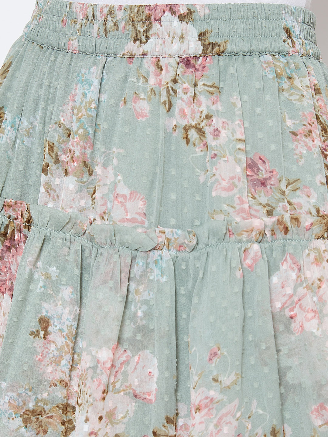 Berrylush Women Green Floral Print Layered Mini Skirt