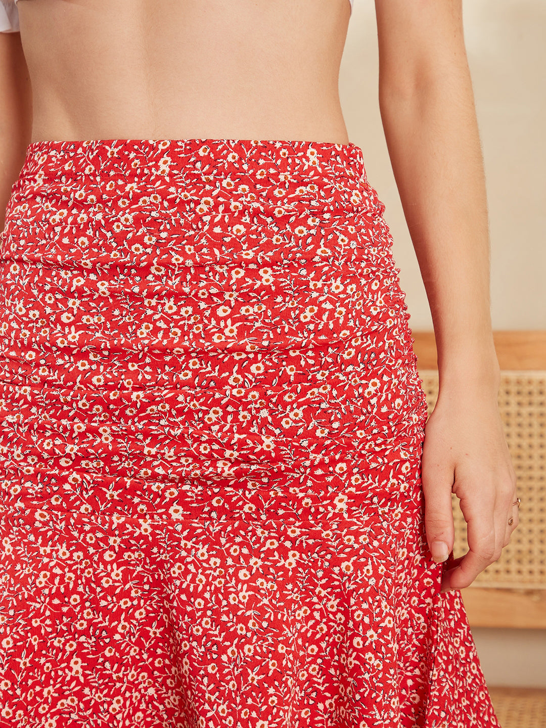 - The red and white floral print gives this skirt a radiant and cheerful appearance