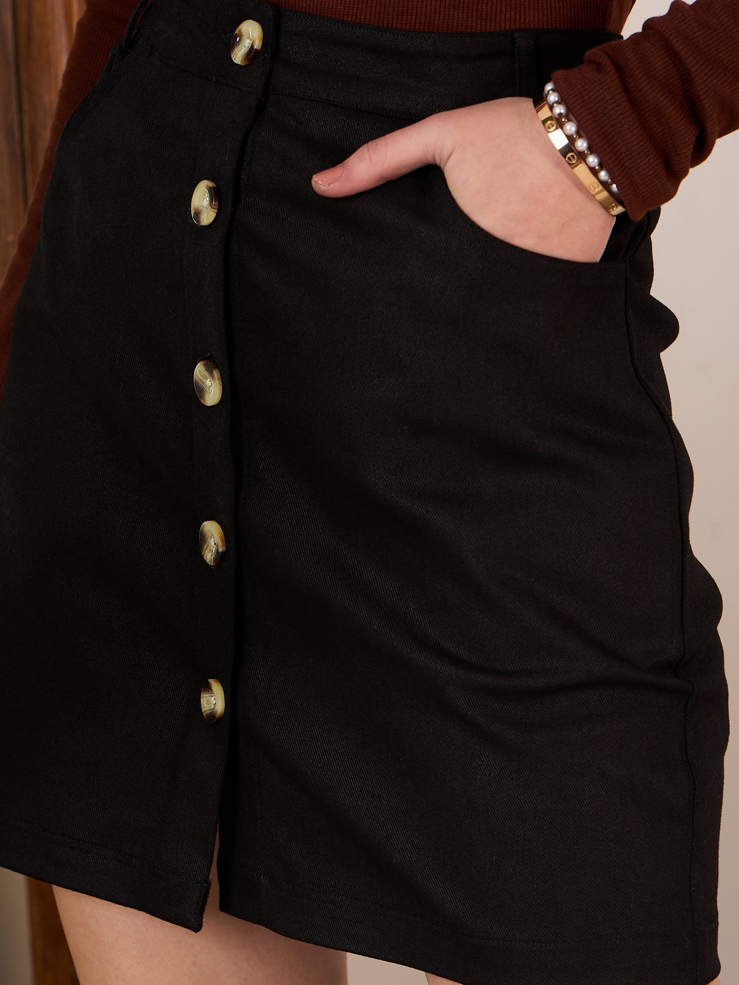 - Black shade with a solid pattern gives this skirt a charismatic look