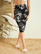 Berrylush Women Multicolour Graphic Printed High-Rise Waist Slip-On Back-Slit Straight Hem Knitted Pencil Midi Skirt