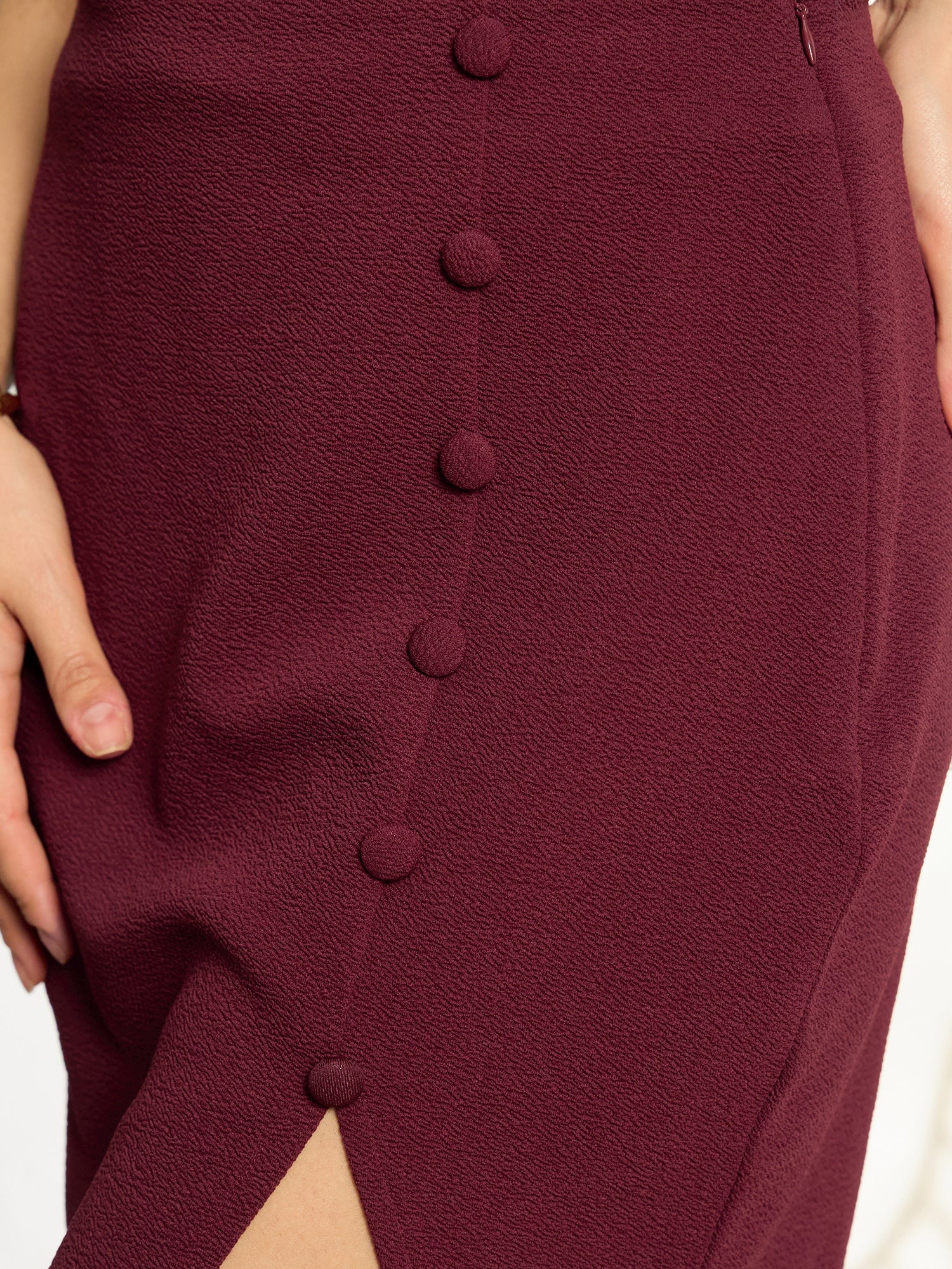 Berrylush Women Solid Maroon High-Rise Waist Front-Slit Straight Hem Button Embellished A-Line Mini Skirt