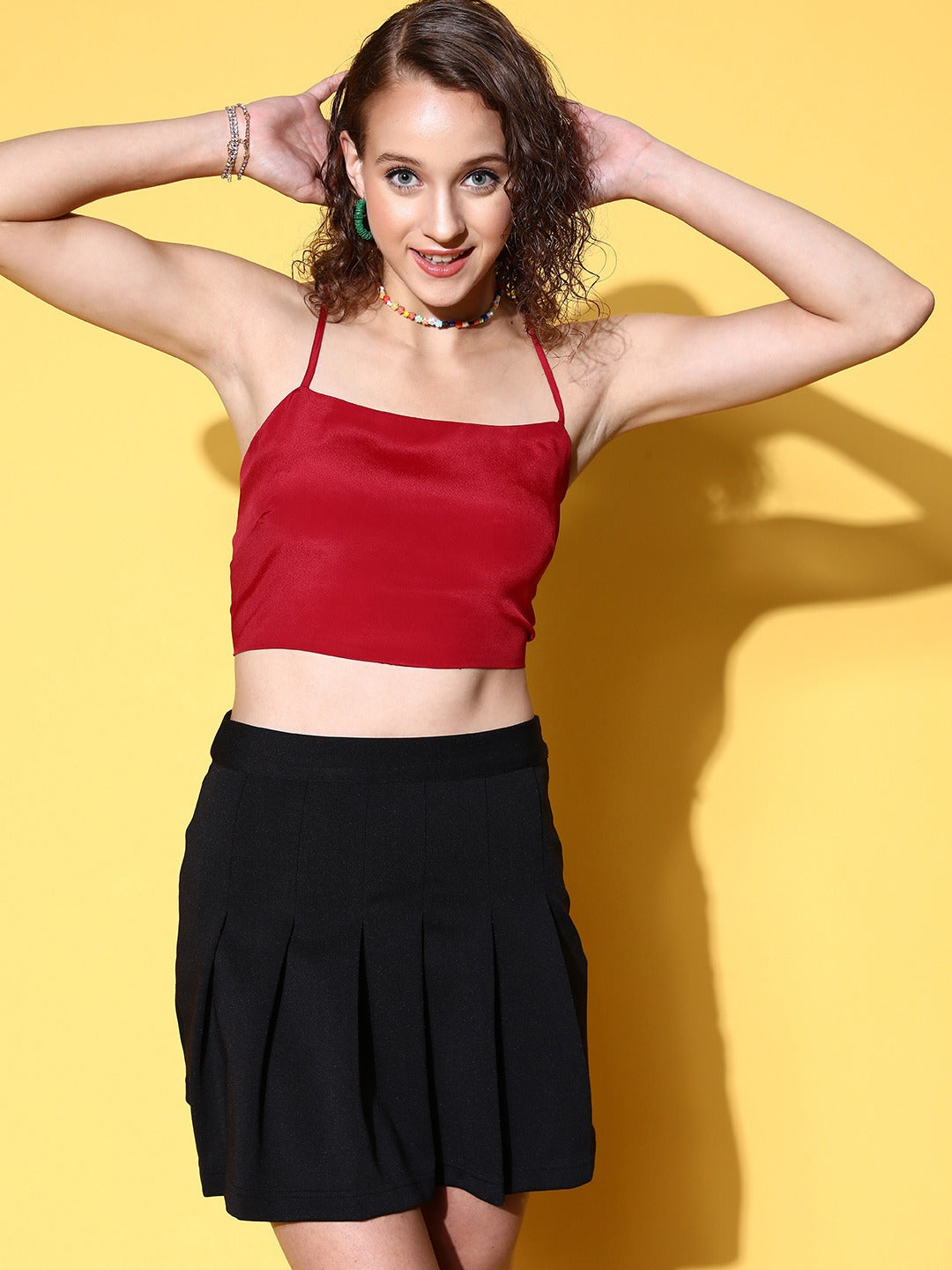 Red holds up the bold aura and never fails to catch people's eyes, thus it's high time to invest in this captivating Red Solid Satin Styled Back Crop Top designed by Berrylush. Adorned with a shoulder strap design that gives this top a supportive structure with a broad and square definition to your beautiful neckline. Detailed with tie-ups surface styling that offers contouring and a comfortable silhouette with a majestic garnishing touch. Also, the woven detailing amp up the durability and breathability of this top. Partner up this crop top over a mini black skirt, a pair of cute black sandals, and a stylish clutch to create a fascinating final look for your next date.