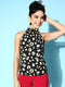 Liven up your capsule assortment with timeless style essence by adding to your cart this bewitching Black and Brown Floral Print High Neck Sleeveless Regular Length Top from the latest casual wear collection of Berrylush. Showcasing high-neck design that lends your neckline a smart appeal with a touch of sophistication. Rendered from the finest polyester material to offer your skin the utmost breathability with unrestricted airflow. In addition, the elegantly outshines your natural figure with a flattering silhouette. Let your fabulous look turn heads by partnering this top with a black mini skirt, block heels, circle hoop earrings, and a trendy side bag.