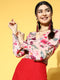Get your capsule closet a chic and cute addition this season with this pretty Solid Pink Dobby Weave V-Neck Bishop Sleeve Georgette Smocked Empire Crop Top designed by Berrylush. Accenting a mesmerizing duo of pink shade and dobby weave that gives this top a modern finish. Styled with long-cuffed sleeves that lend your arms a beautiful and fashionable coverage with a voluminous look. Also, the woven detailing improves the overall structure of this top with a delicate touch to your skin to avoid irritation. Stylishly spin through the weekend by wearing this crop top with a black leather mini skirt, minimalistic silver jewellery, a pair of pink ankle boots, and a matching side bag.