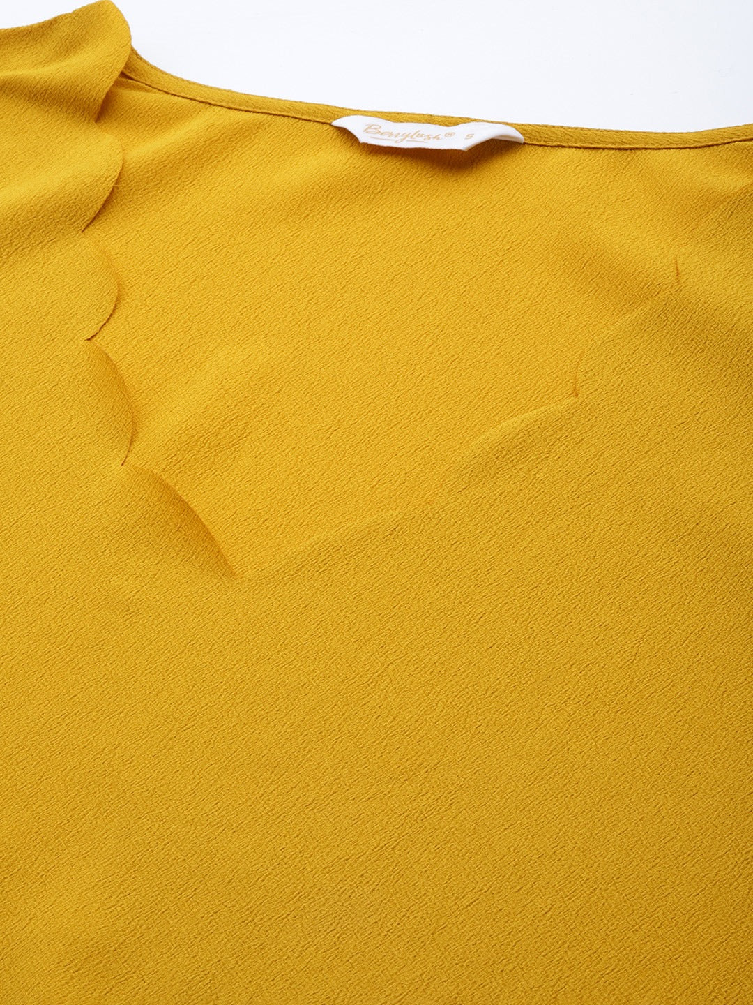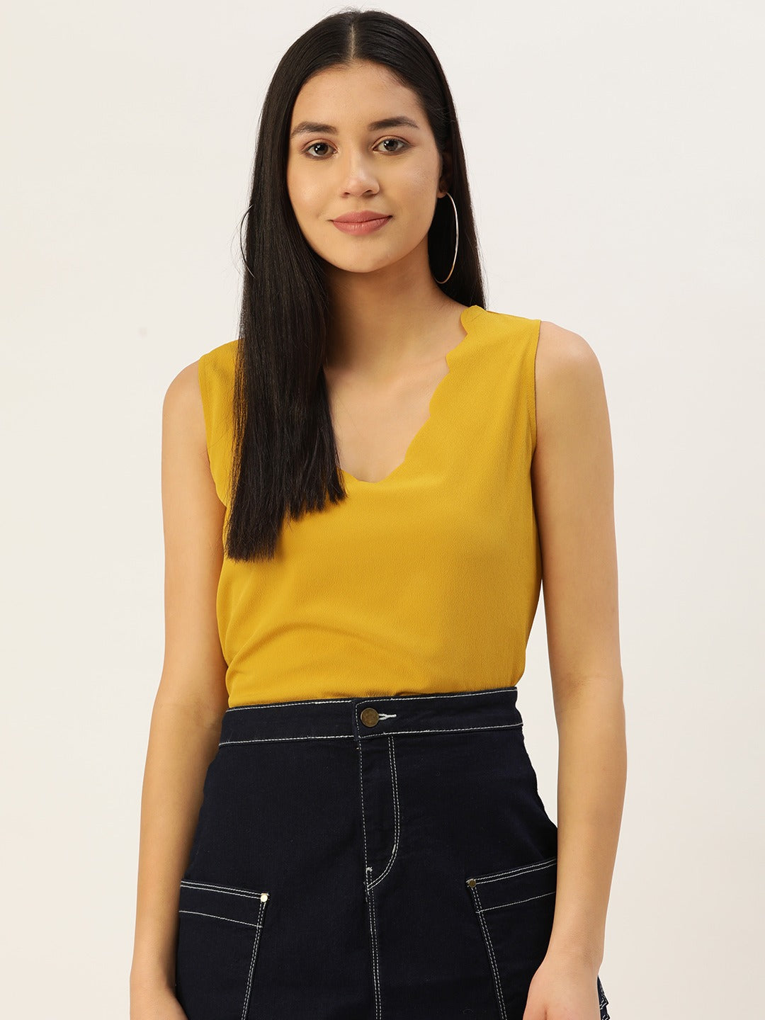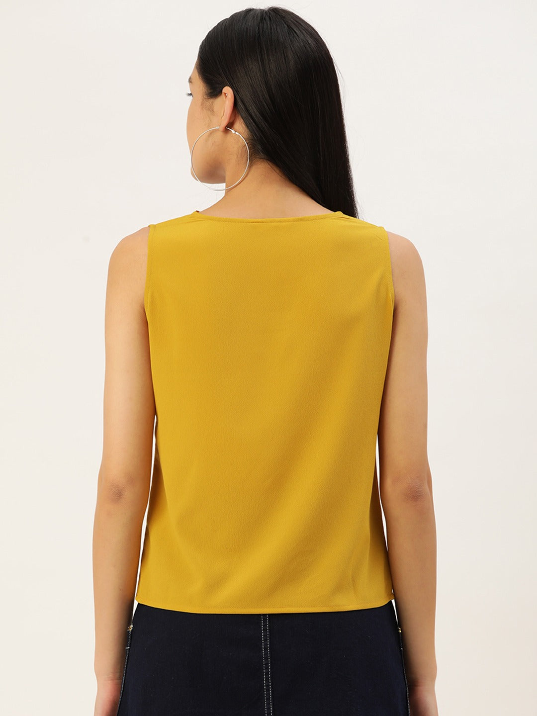 Berrylush Women Solid Yellow V-Neck Sleeveless Crepe Regular Top