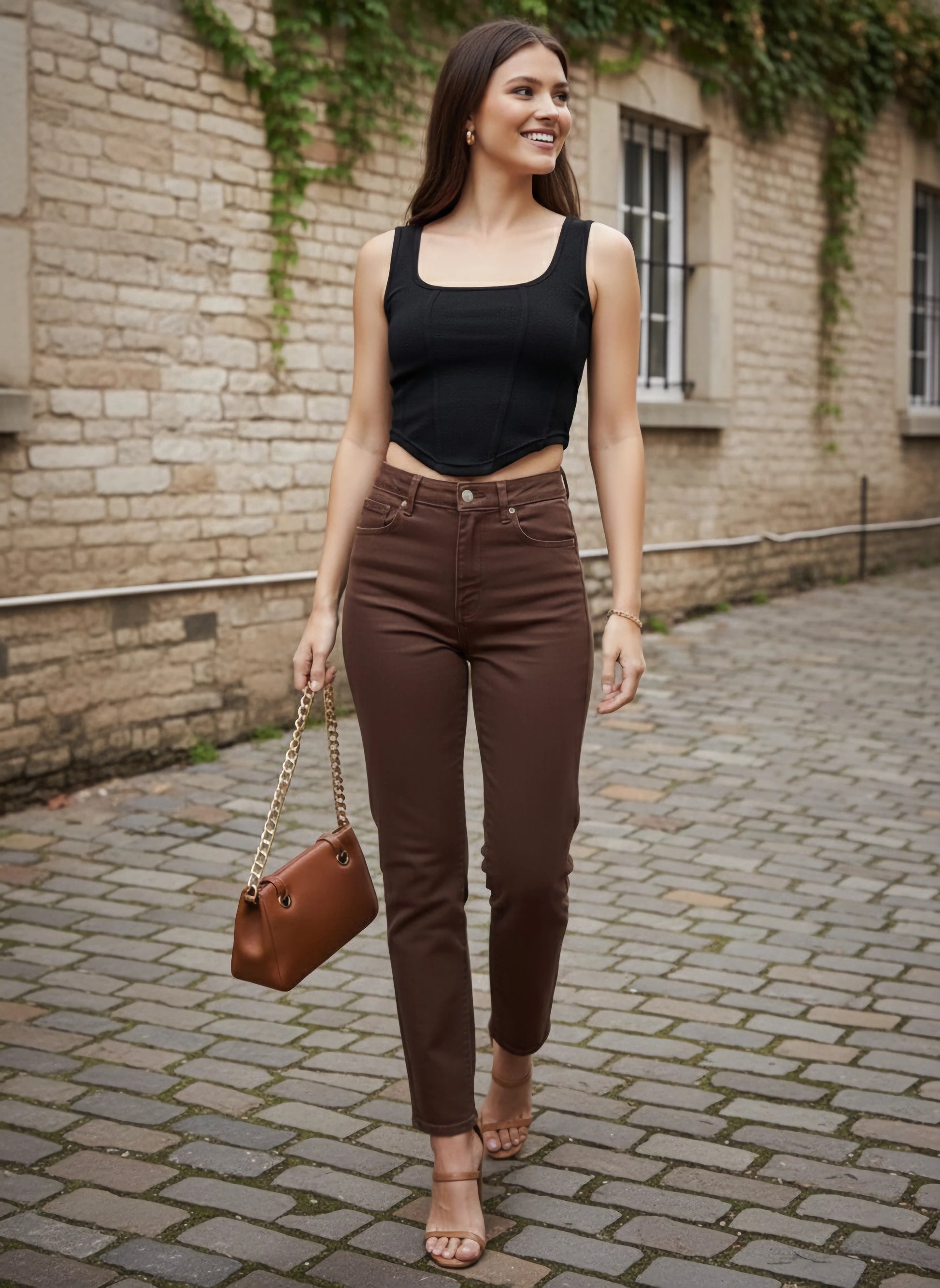 Enjoy yourself in a chilled-out way by opting for summer tunics by wearing this Solid Black Square Neck Sleeveless Cotton Hanky Hem Cropped Tank Top from Berrylush. This top is a must-have for your summer closet as it comes with a sleeveless design that lends your arms an enticing exposure and keeps them cool all day long. Featuring a square design that gives your neckline a dramatic outline that grabs all the attention towards you. Also, the cropped tank design lends you an eccentric appeal which presents your sexy look. Pair this tank top with relaxing fit shorts, crocs, and a waist bag to get an astonishing appearance.
