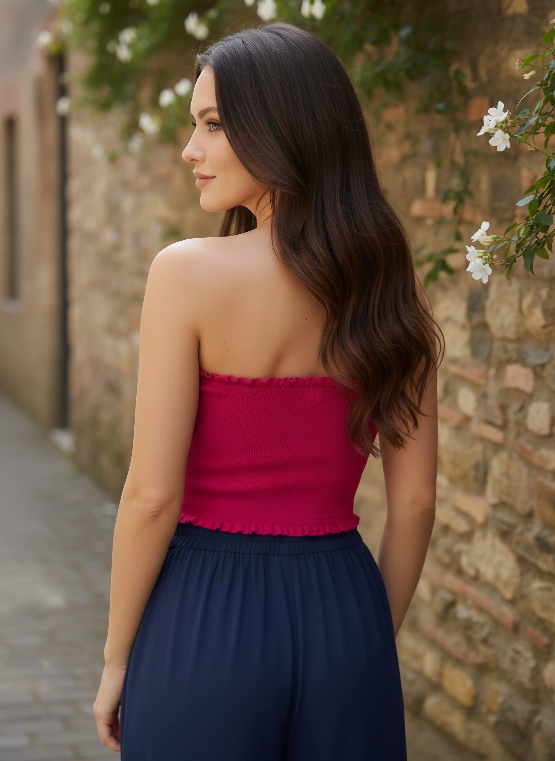 Elevate your smart-casual wardrobe with the Berrylush Solid Bright Pink Tube Top, a vibrant addition that promises to turn heads. This piece is expertly crafted from premium polyester fabric, presenting a comfortable weave that's both lightweight and breathable. Its strapless neckline accentuates the shoulders, while the cropped length offers a chic peek of the midriff. The sleeveless design keeps it breezy for any occasion, enhanced with an opaque finish for confidence in coverage. The top dazzles with its solid bright pink hue and smocked surface styling, adding texture and flair to your ensemble. Ideal for those who cherish backless elegance without sacrificing comfort or style.