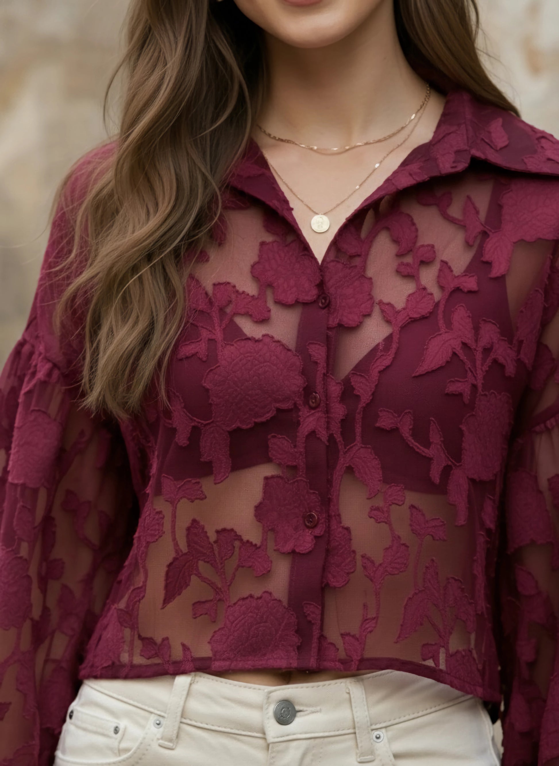 Introducing the Berrylush Maroon Floral Printed Top, your new wardrobe staple for effortless elegance. Crafted from high-quality polyester, this top features a charming spread collar neckline and bishop long sleeves that add a touch of romance to any casual outing. The floral print infuses classic maroon with fresh vibrancy, enhanced by a smart button-up front closure. Designed for comfort and style with an opaque lining ensuring coverage, its regular length allows versatile pairing with jeans or skirts making it perfect for those who value both comfort and chic sophistication in their everyday attire.