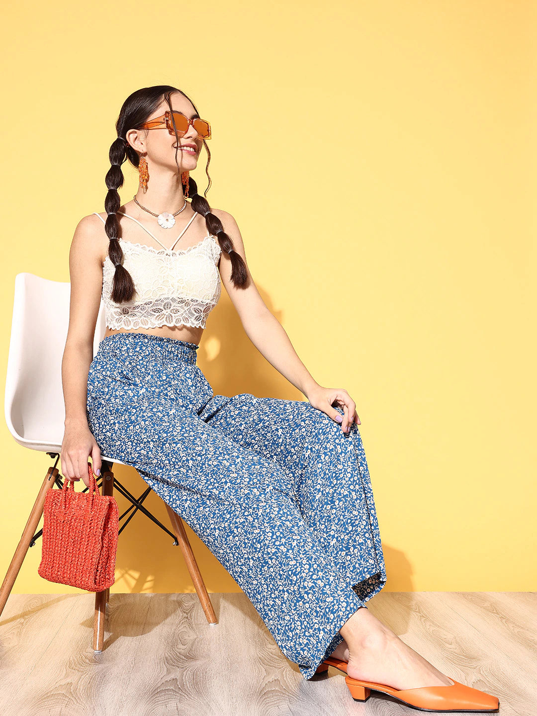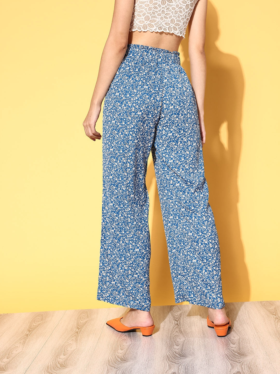 Seeking for the perfect blend of fashion and function, then add to your shopping cart these bedazzling Blue Floral Printed Relaxed Loose Fit High-Rise Paper Bag Regular Trousers introduced by Berrylush. Flaunting a charismatic amalgamation of blue and white floral print that gives these trousers a refreshing and radiant appearance with a tinge of nature’s beauty. Designed with a flat front that lends these trousers a straight and smooth silhouette along with a universally flattering style note. Comes with woven detailing that enhances the structural integrity of these trousers with irritation-free touch to your skin. Mix and match these trousers with your favourite crop top, a pair of flat sandals, floral stud earrings and a trendy tote bag for a chic look.