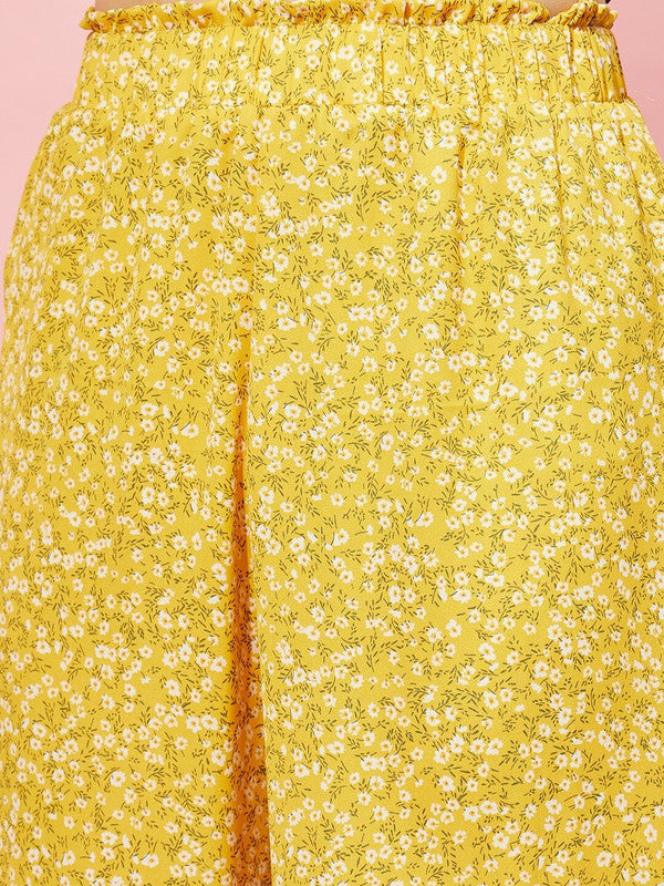 Unleash your vibrant side with the latest from Berrylush: our eye-catching Yellow & White Floral Printed High-Rise Waist Slip-On Smocked Regular Parallel Trousers. Designed for the modern woman who loves to blend comfort with style, these parallel trousers feature a captivating high-rise waist adorned with smocked detailing, ensuring both snug fit and unparalleled elegance. Crafted meticulously from premium polyester fabric in a woven weave, they promise lasting durability and breathability for all-day wearability. Perfect for casual outings, these regular-fit trousers boast an opaque finish coupled with a slip-on closure type for maximum convenience. Let your wardrobe bloom with this exquisite pair!
