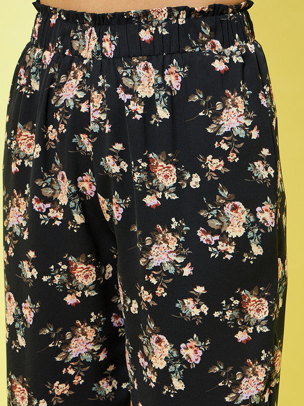 Embrace a blend of comfort and style with Berrylush's Black Floral Printed Trousers. These high-rise pants feature an elastic waistband for easy slip-on access, ensuring a perfect fit that flatters every time. Adorned with charming floral prints on luxurious polyester fabric, the trousers offer a loose-fit silhouette accentuated by elegant pleats. Ideal for any casual occasion, these opaque woven trousers ensure both durability and breathability. Step out in confidence and ease, enjoying the seamless combination of functionality and chic design.