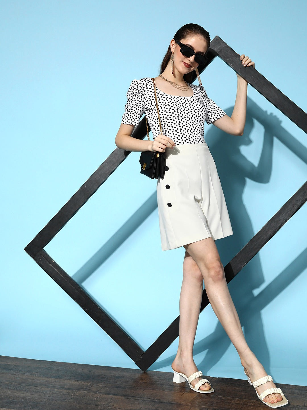 - White and black polka dot print assembles a periodical and captivating charm