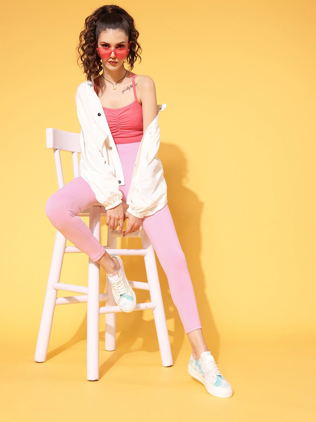 Looking for the comfiest sportswear options for your workout wardrobe, then end your search right here as Berrylush brought you these amazing Solid Pink High-Rise Elastic Waist Sports Tights. Made from the finest polyester fabric that provides the fade-free feature with high elasticity without worrying about see-through issues as it provides opaque transparency. Comes with strong stitching that lends these tights outstanding durability and smart structural integrity. Designed in full length which helps to prevent slips while training as the fabric generally absorbs the sweat on your skin. Team up these sports tights with a pair of cool sports shoes and a gym side bag to get a fashionable look.