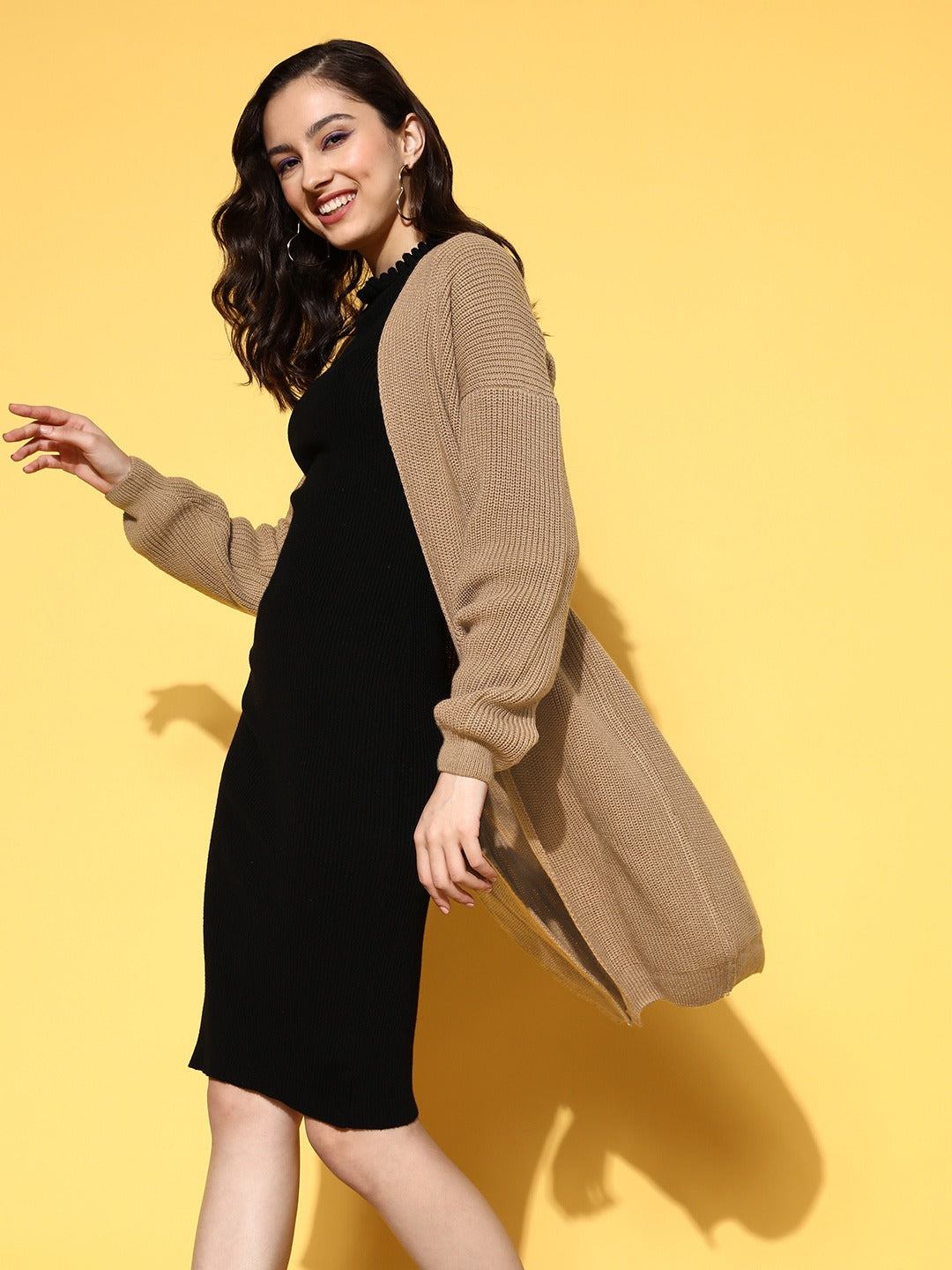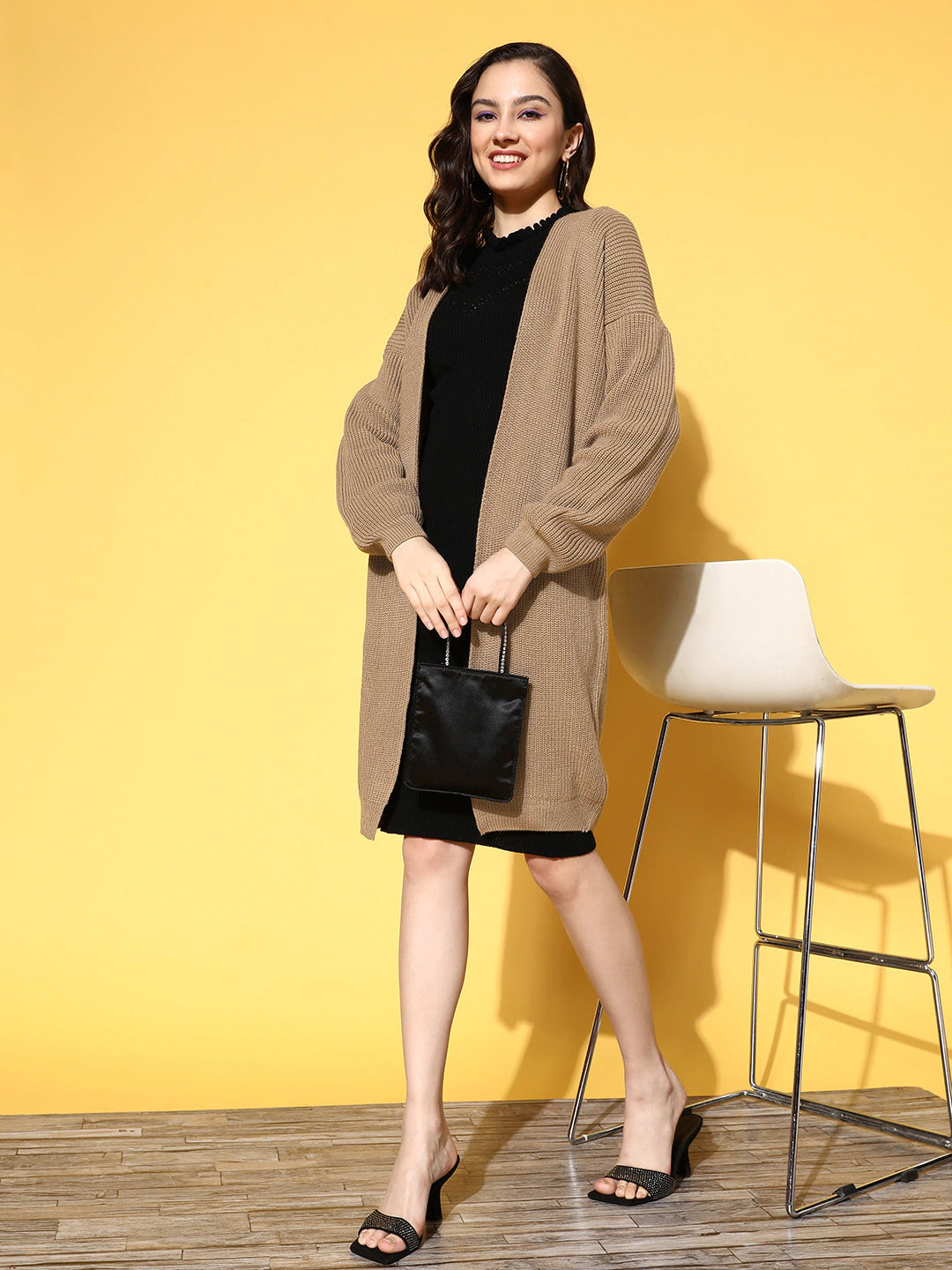 Take on the latest fashion favourite with a rework of classiness by picking this charming Beige Longline Cardigan introduced by Berrylush from its premium winter collection. Flaunting a captivating amalgam of beige shade with a solid pattern that presents a versatile and refined style statement of this cardigan. Accentuated with a v-neck design that gives your neckline and collarbones an eye-catching definition. Moreover, the long-regular sleeves of this cardigan lend your arms attractive coverage to keep them warm and cosy all day long. Layer up this longline cardigan over a bodycon dress with a pair of black boots, glittery earrings, and a trendy sling bag to get a fashion-focused look for your next outing.
