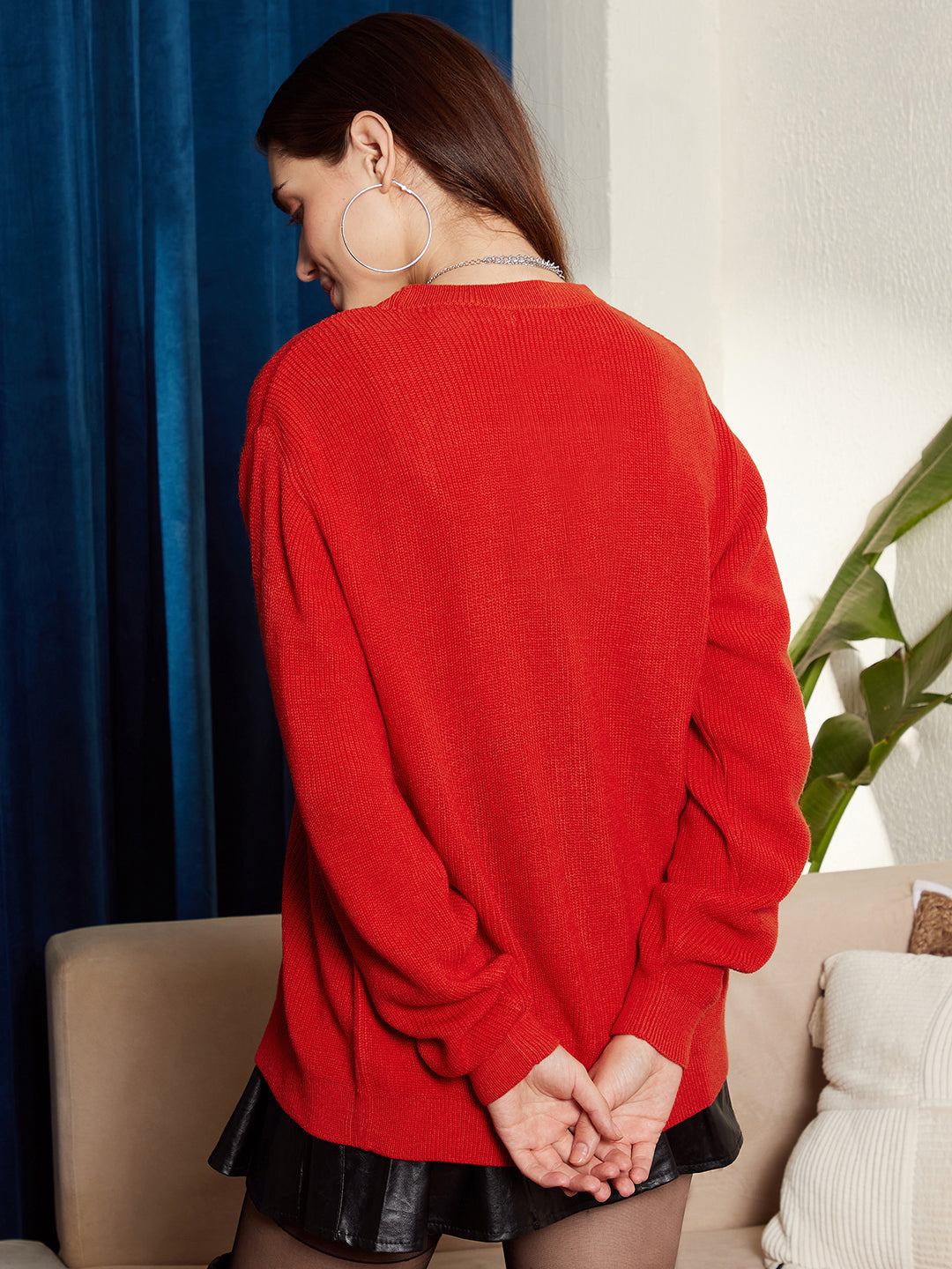 Introducing the Berrylush Solid Red V-Neck Drop-Shoulder Sleeves Button-Up Ribbed Hem Regular Cardigan, a vibrant addition to your casual wear collection. Crafted from soft, acrylic fabric, this cardigan offers both comfort and style. The solid red hue pairs effortlessly with any outfit, adding a splash of colour to your day. Featuring a fetching V-neck alongside long drop-shoulder sleeves, it combines modern flair with relaxed vibes. Its ribbed hem ensures a snug fit while the button-up closure adds classic elegance to its design. Whether you're out for coffee or lounging at home, this regular-length knitted piece promises warmth without compromising on style - perfectly opaque for effortless layering over your favourite tops.