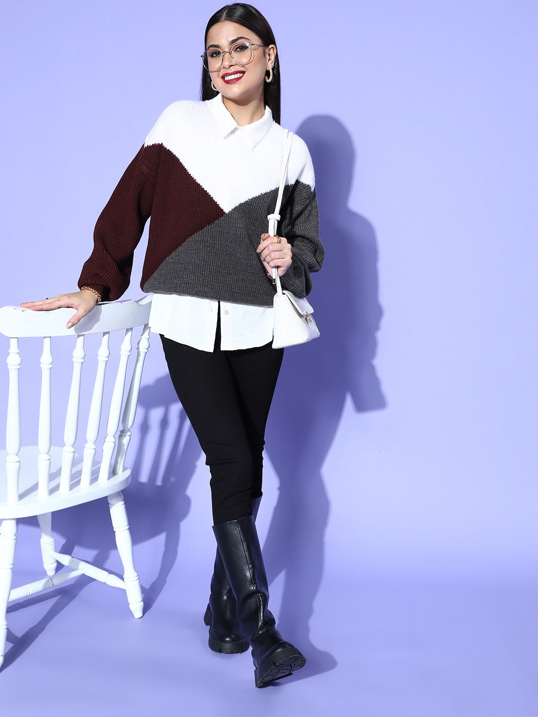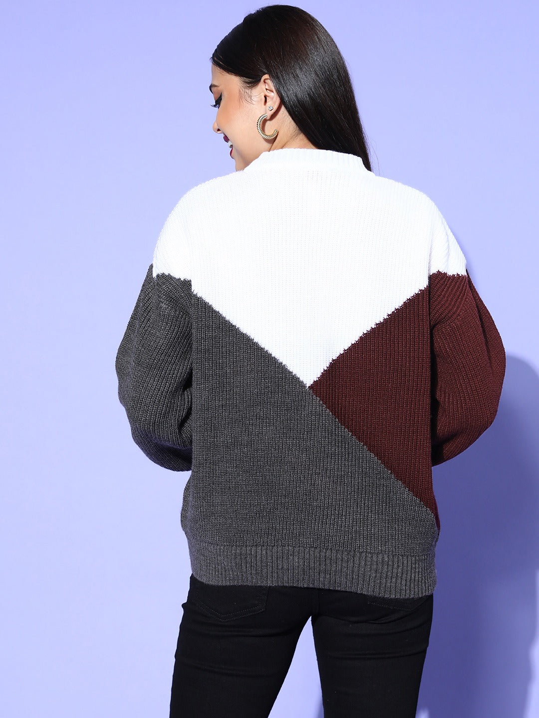 - Colourblocked pattern lends this pullover versatility with a chic twist