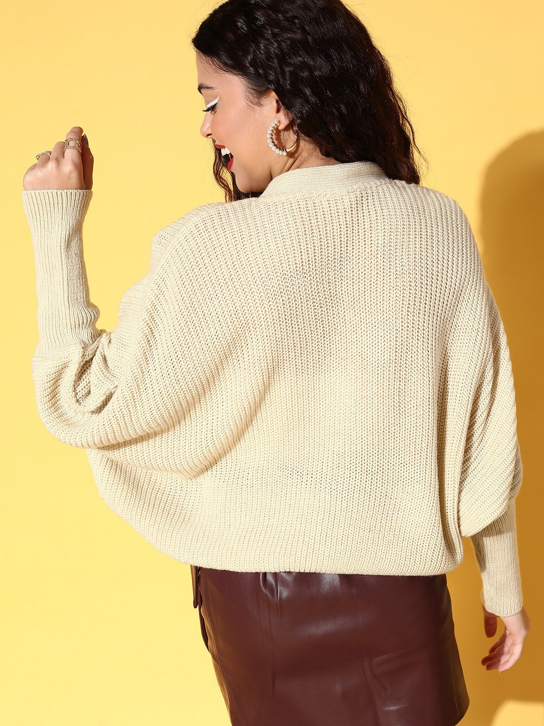 Amplify your winter fashion game with soft, stylish, and comfy options just like this beautiful Beige Solid Pullover Sweater introduced by Berrylush from its latest winter wear collection. Punctuated from the finest acrylic fabric to enable this sweater retains heat without airflow and pleasing touch to your skin. Presenting a pullover style that makes this sweater easy to style with a simple pull-on and out feature along with a refined outer appearance. In addition, the regular length lends this sweater a classy look with convenient coverage of your upper body. You can mix and match this pullover sweater with a mini skirt, ankle-length boots, minimalistic pearl jewellery, and a cute side bag to get a fashion-forward look.